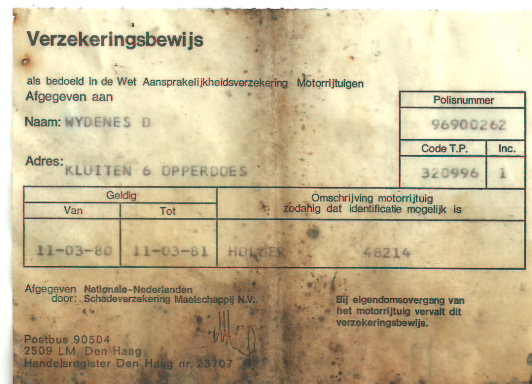 In der Werkzeugkiste habe ich noch einen Versicherungsnachweis gefunden.