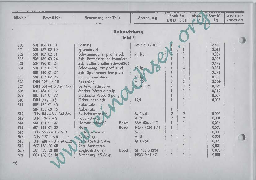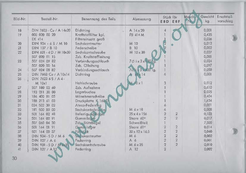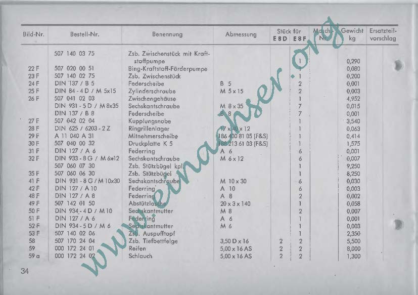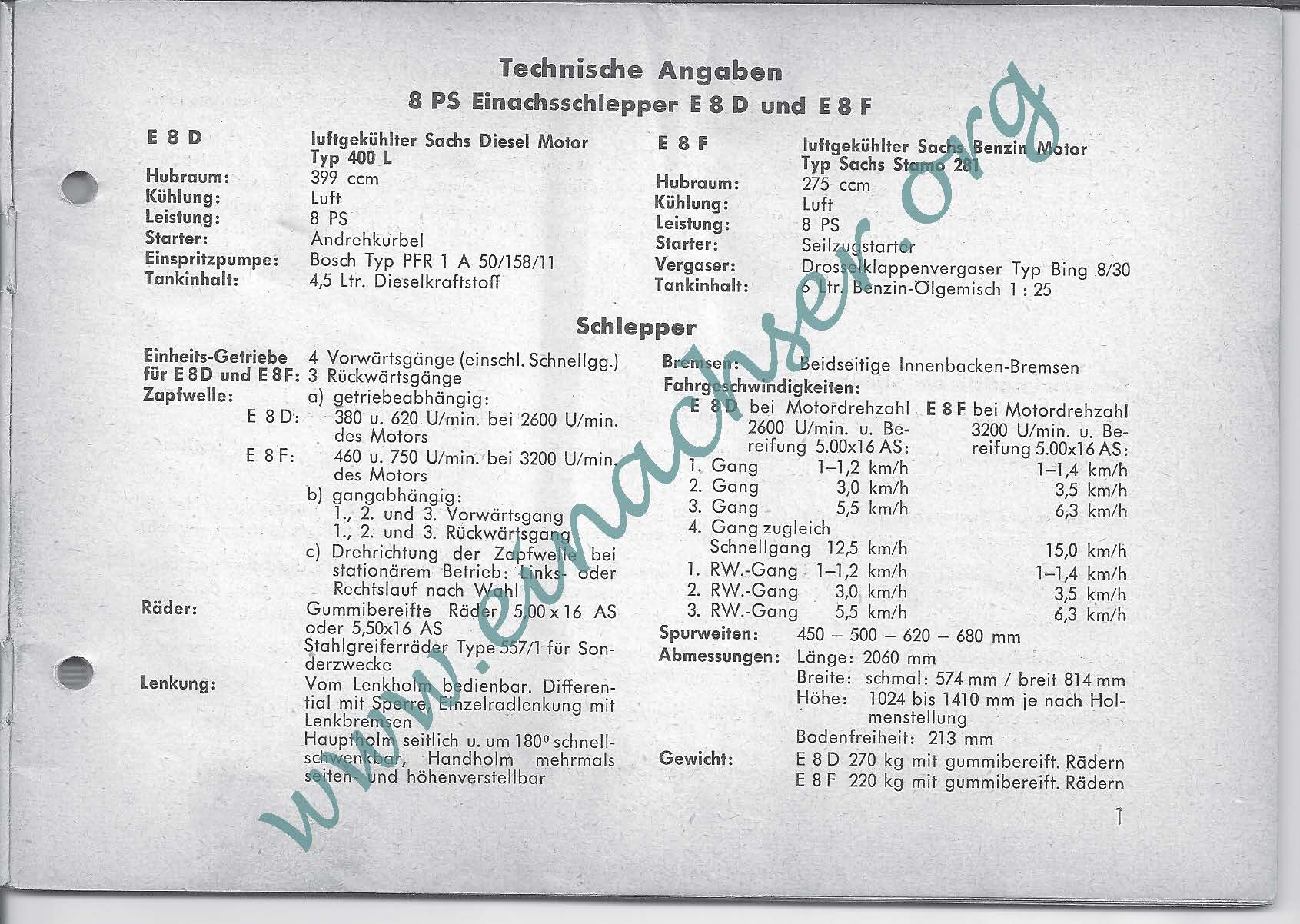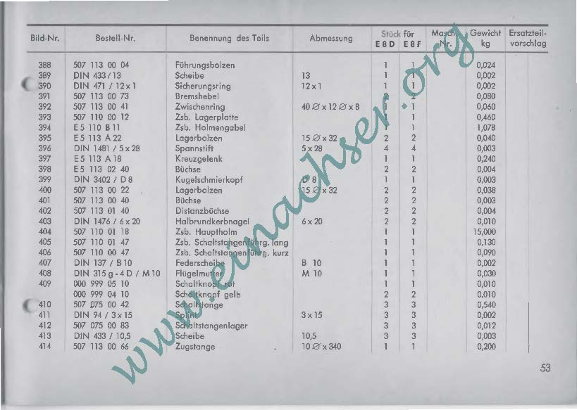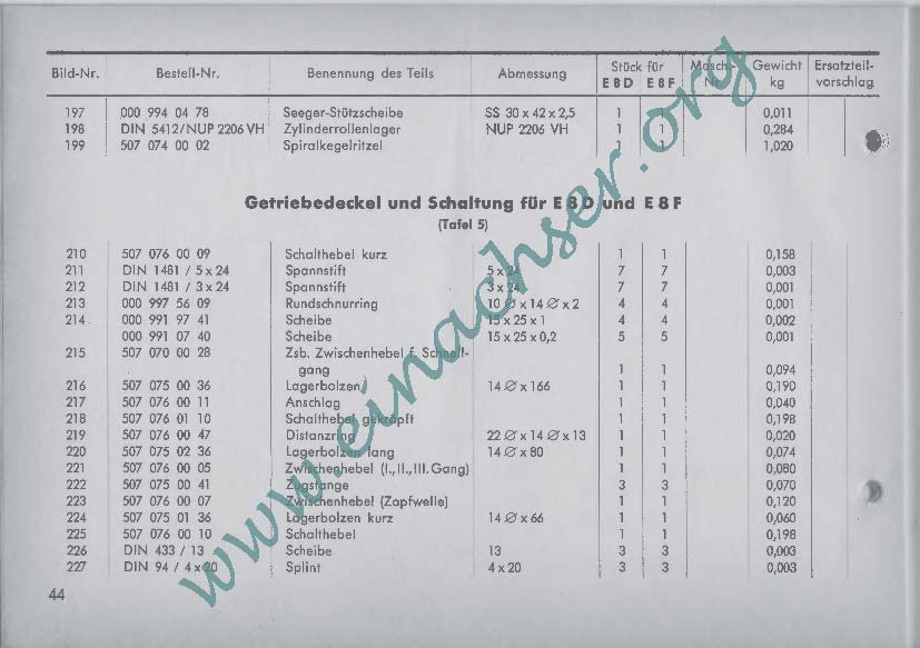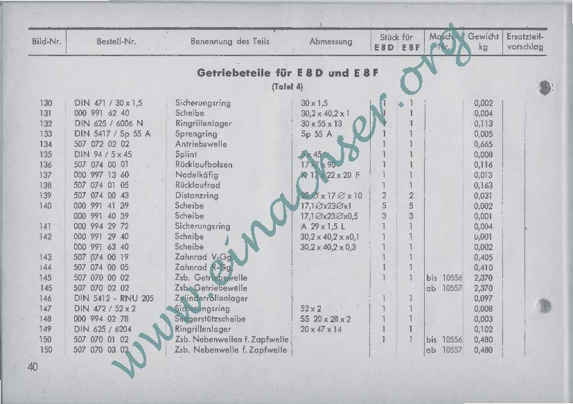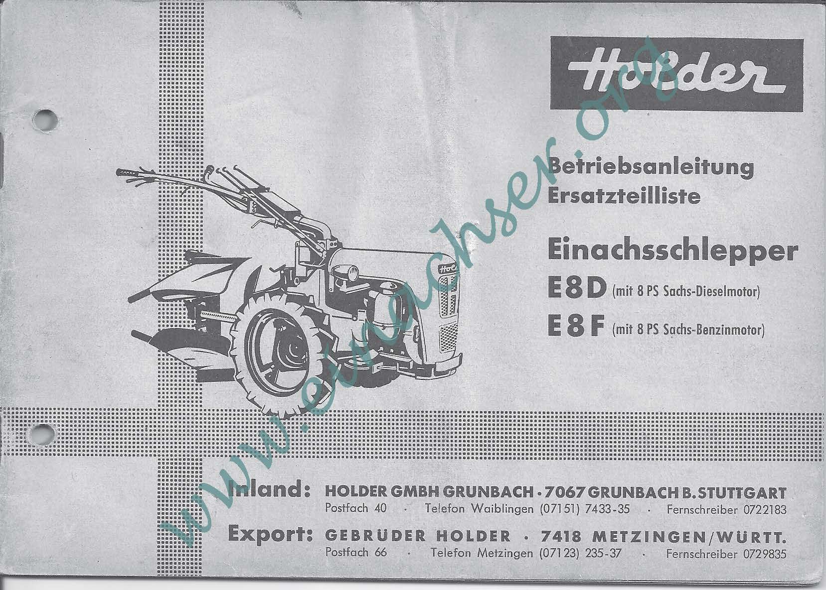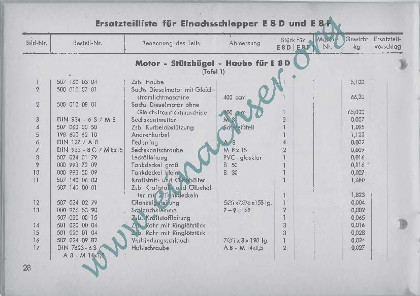 Ersatzteilliste für Einachsschlepper E8