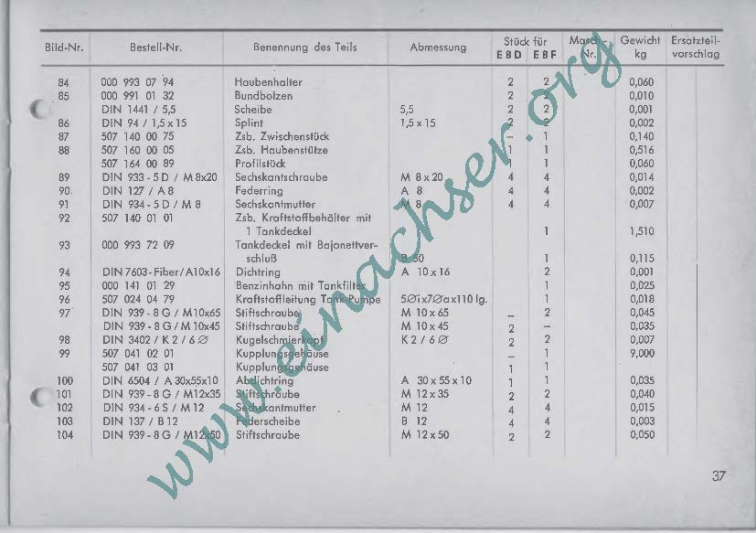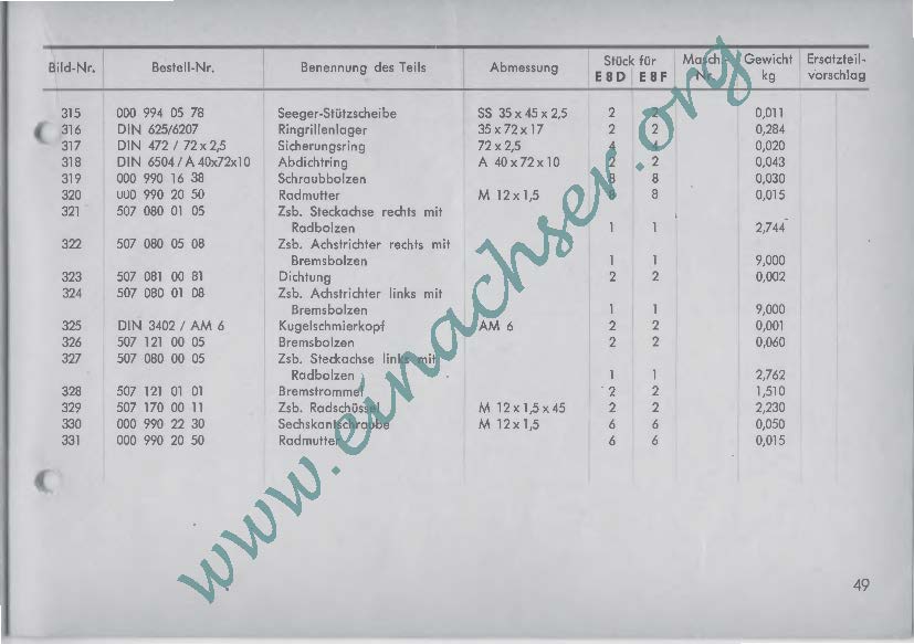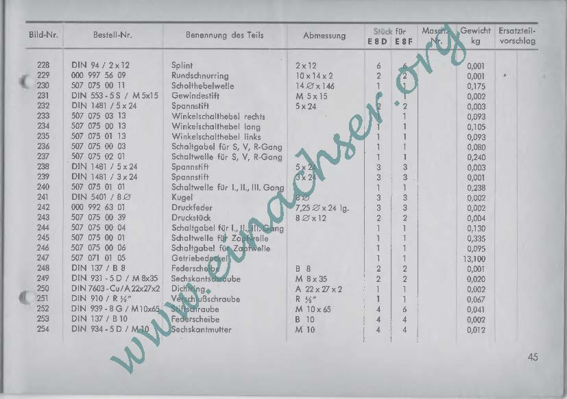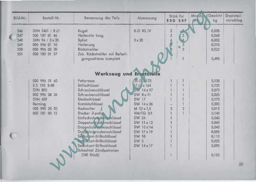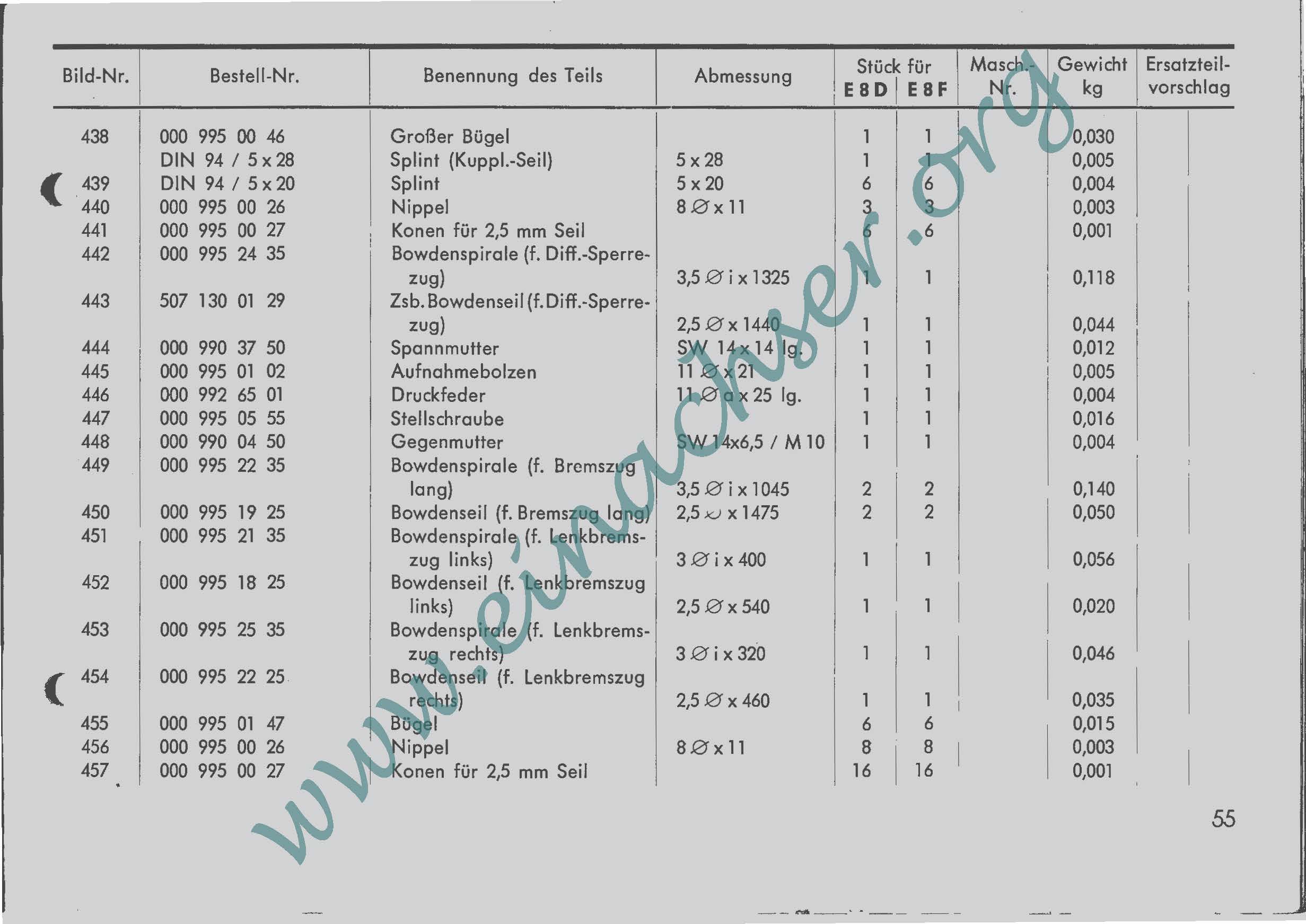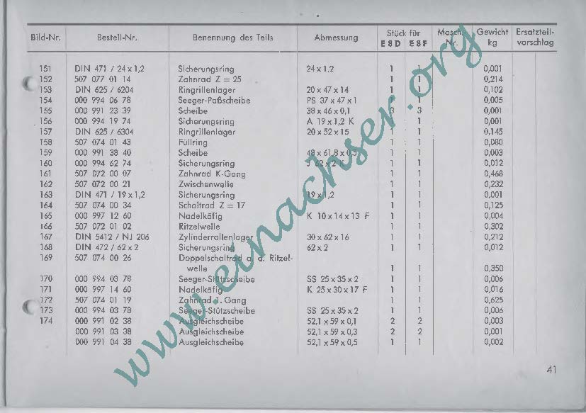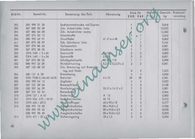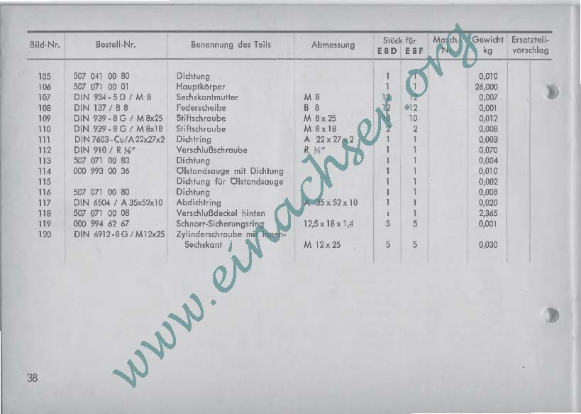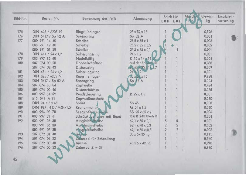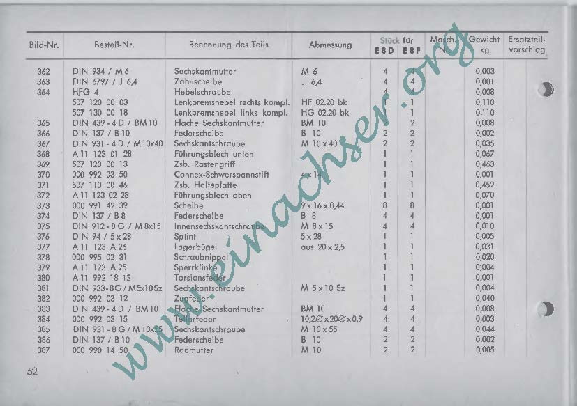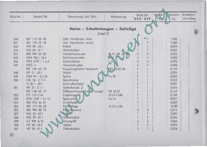 Ersatzteilliste für Einachsschlepper E8