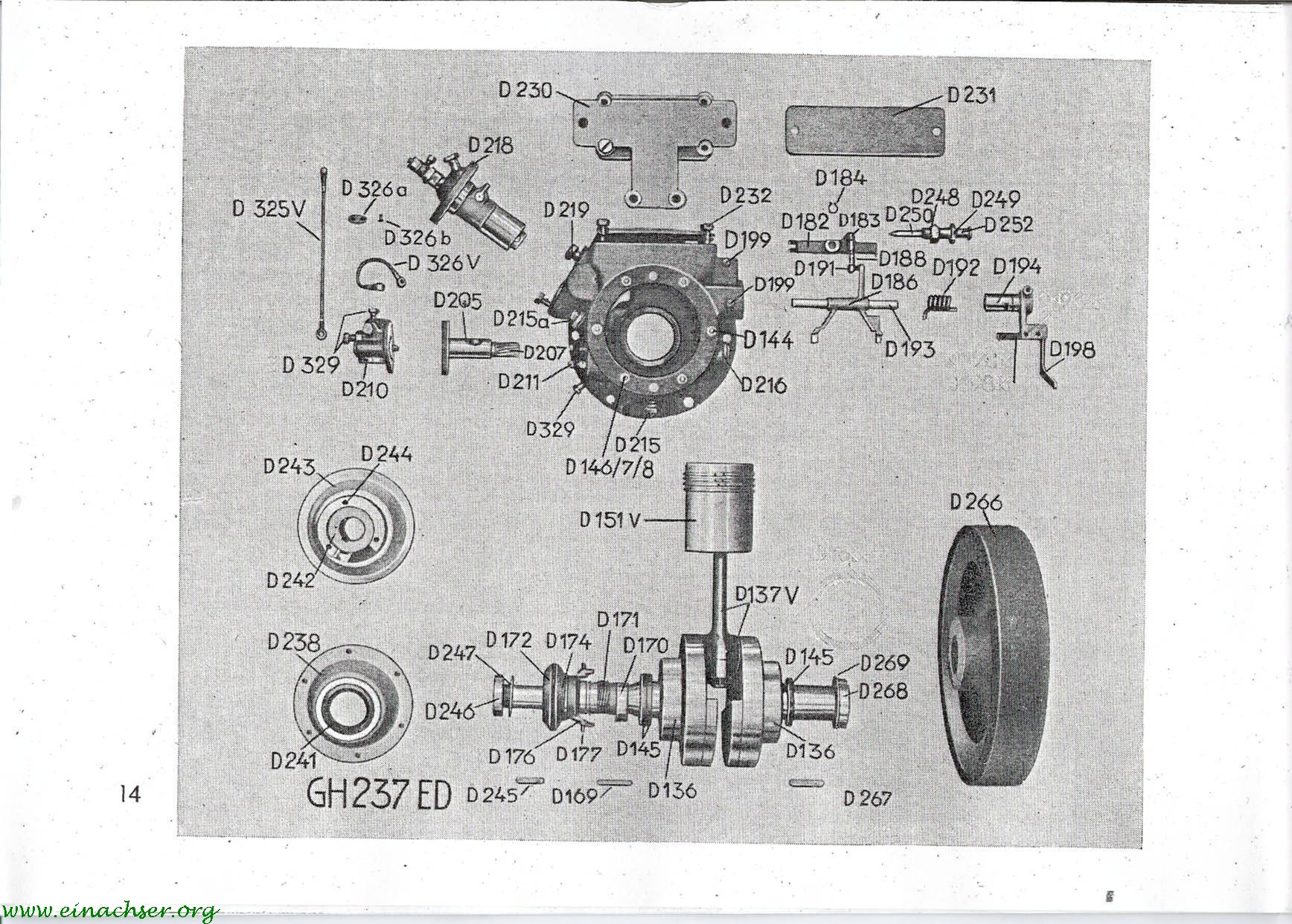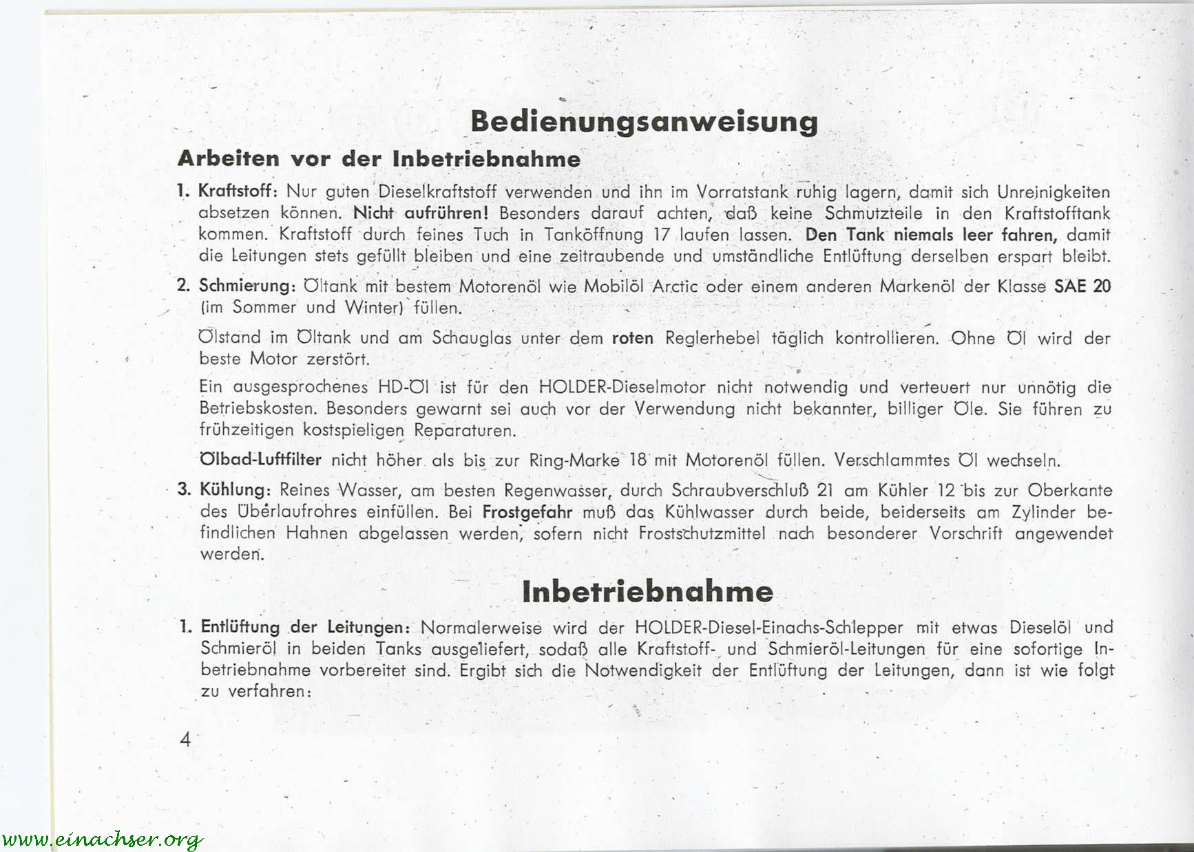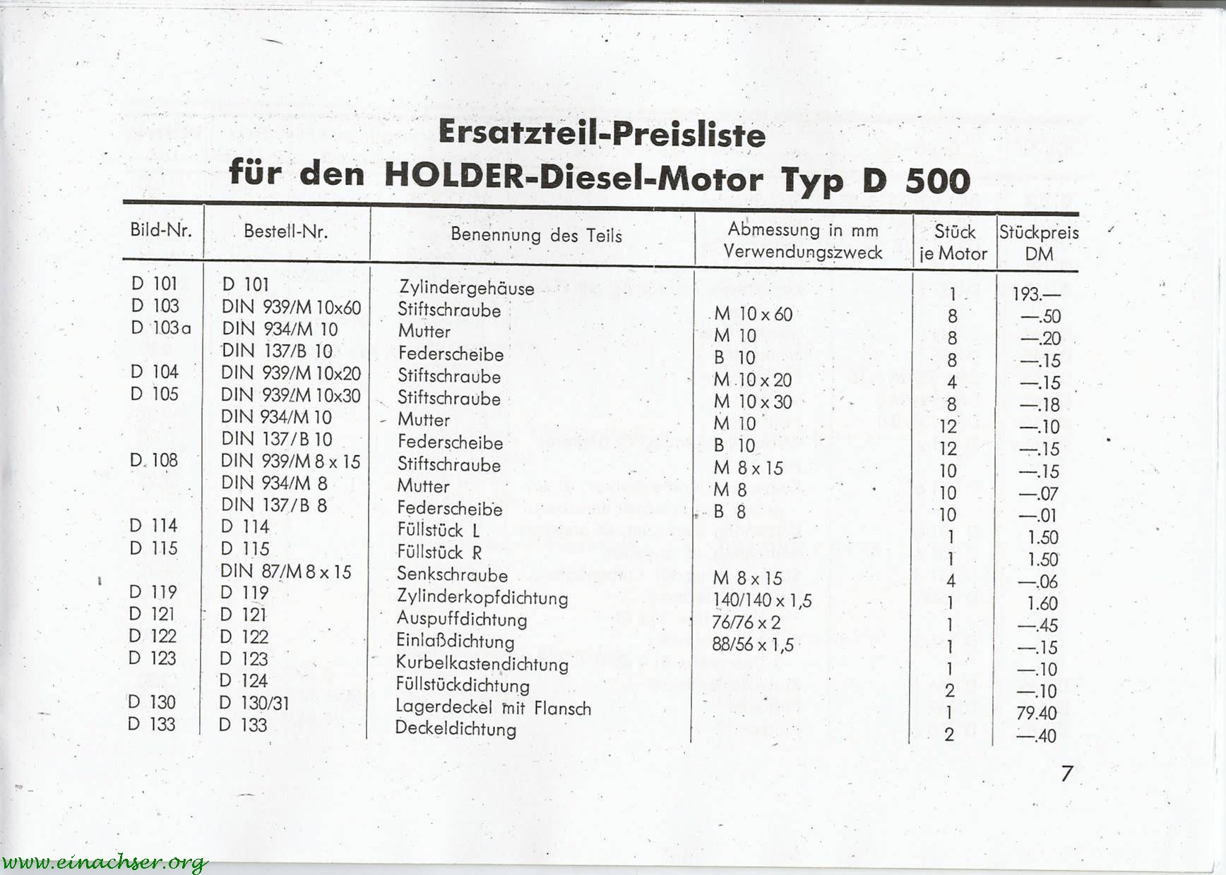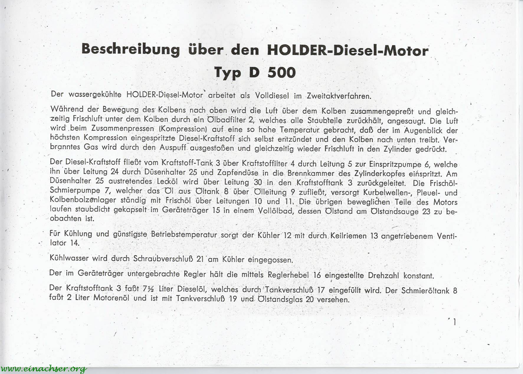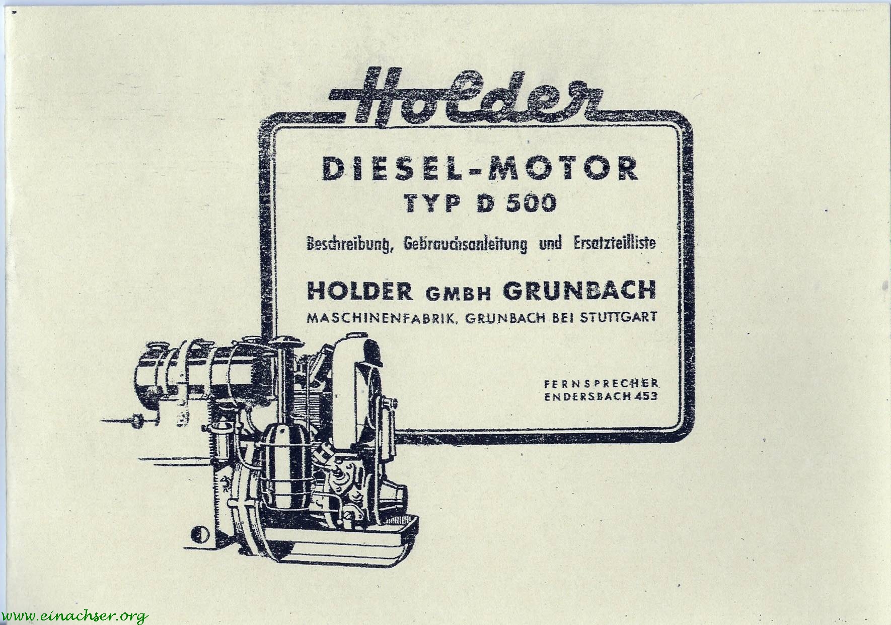 Beschreibung, Gebrauchsanweisung und Ersatzteilliste zum Holder Diesel-Motor D500