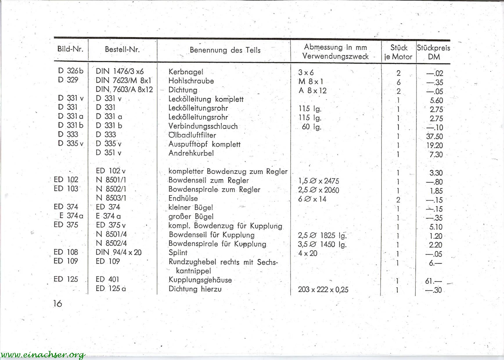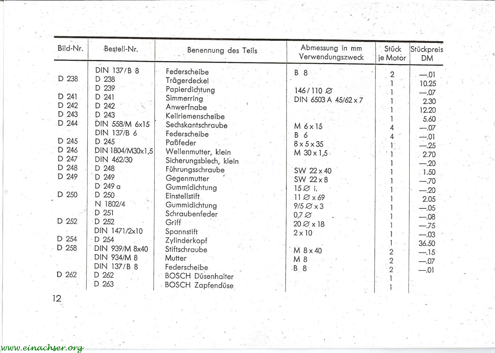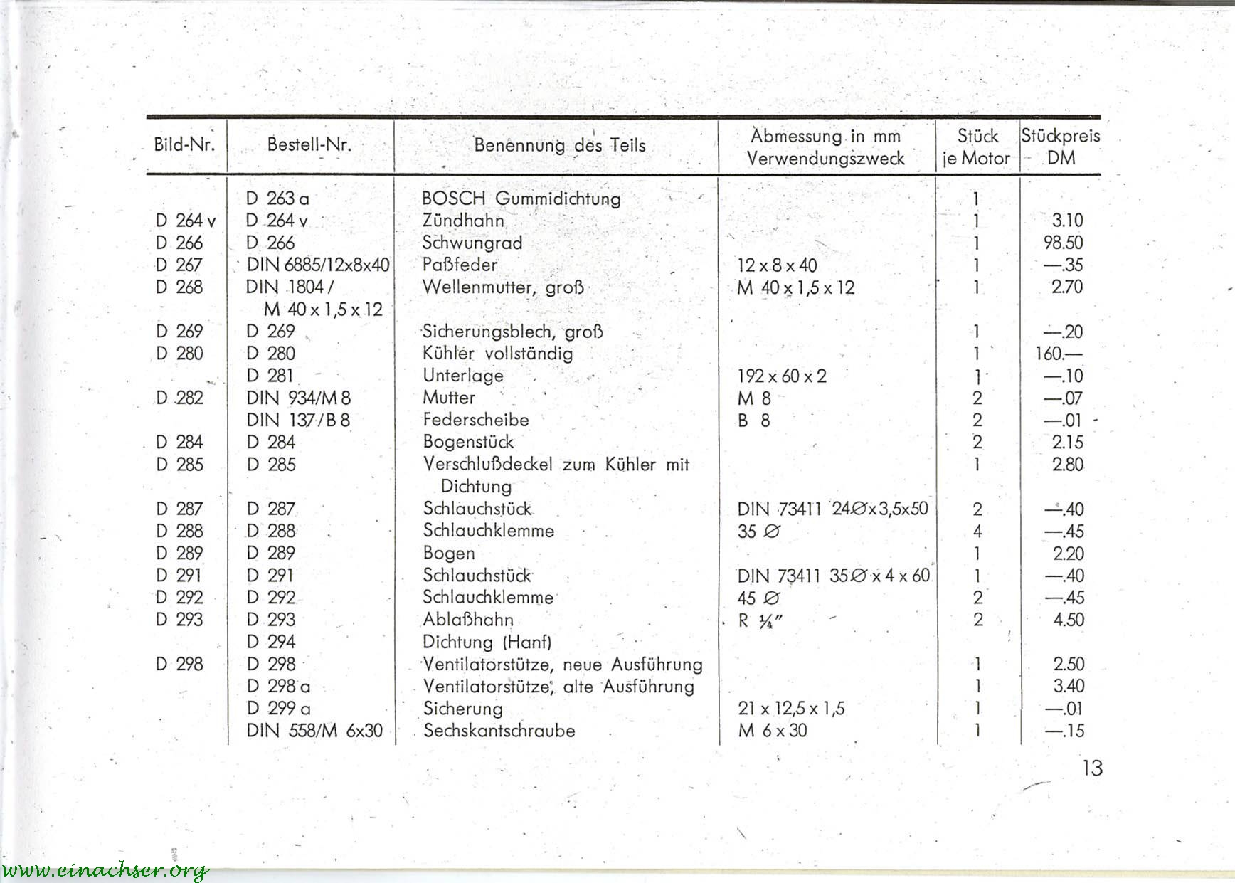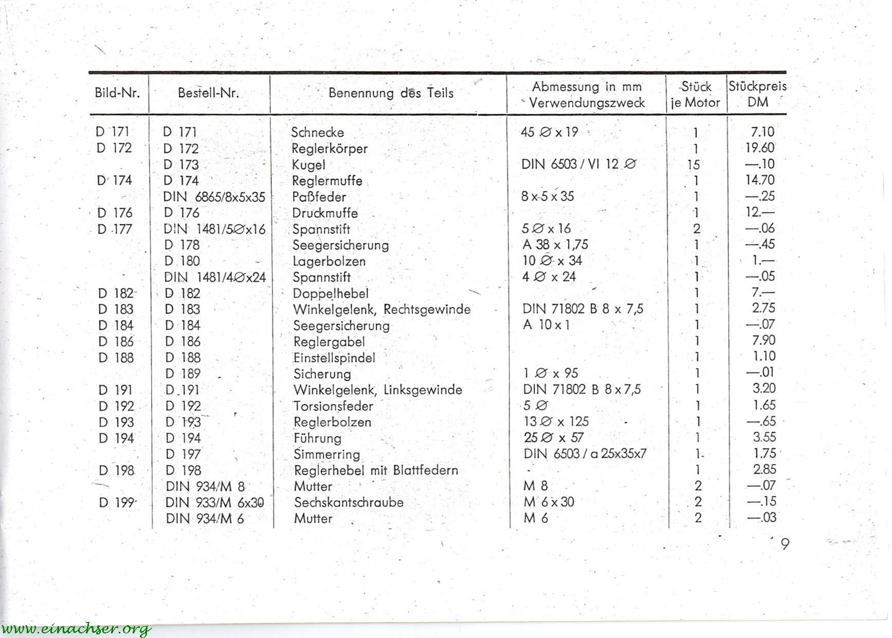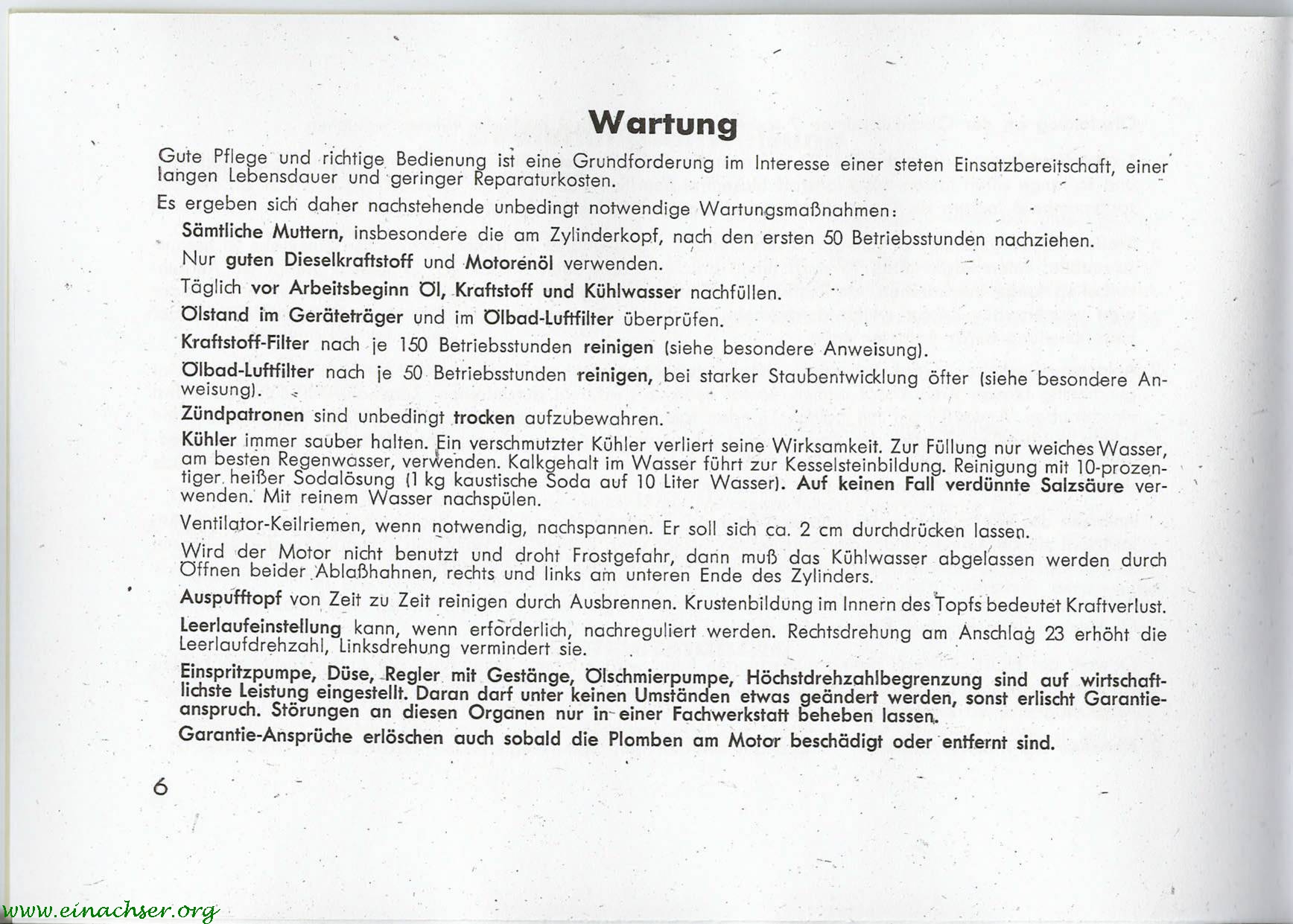 Beschreibung, Gebrauchsanweisung und Ersatzteilliste zum Holder Diesel-Motor D500