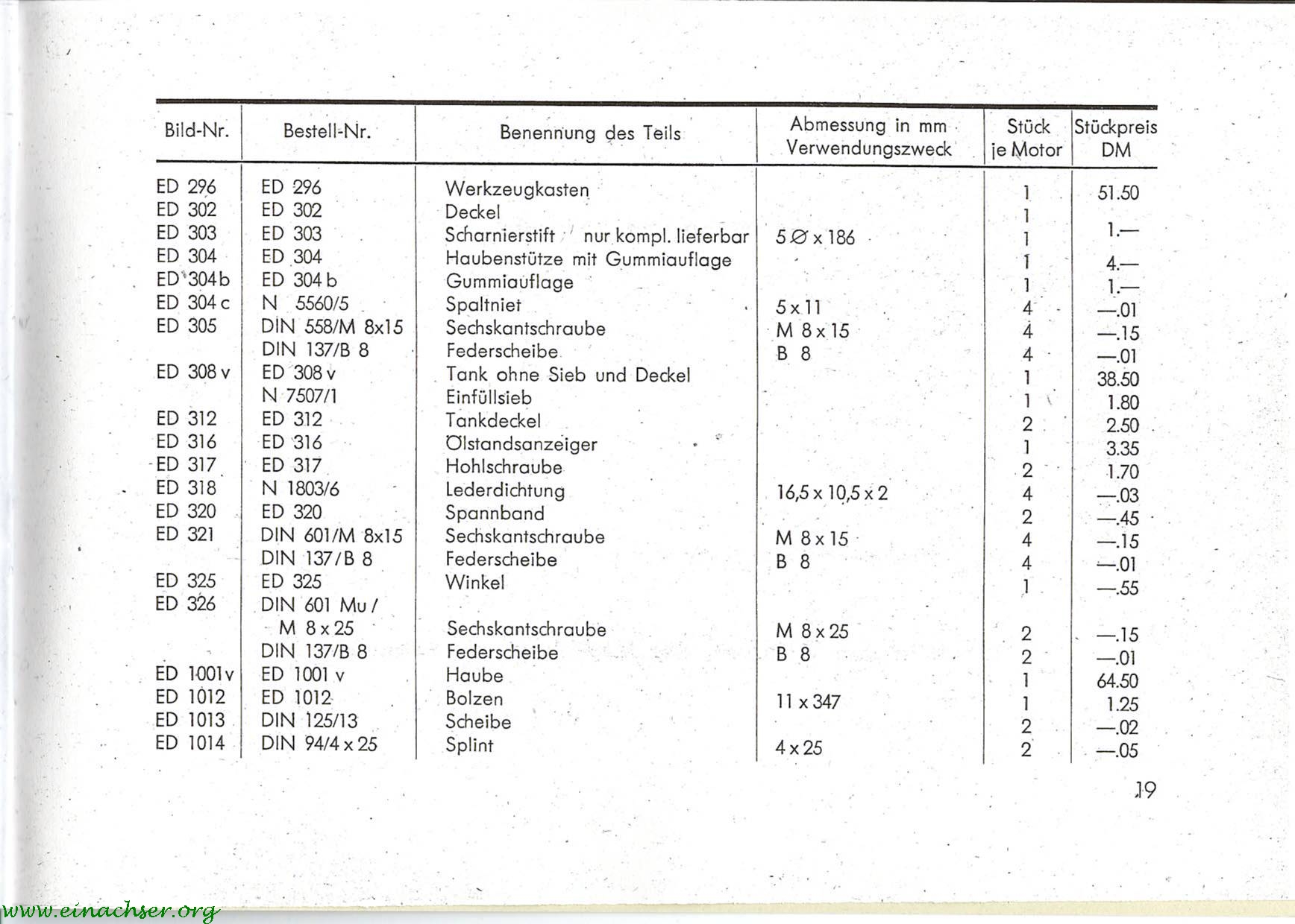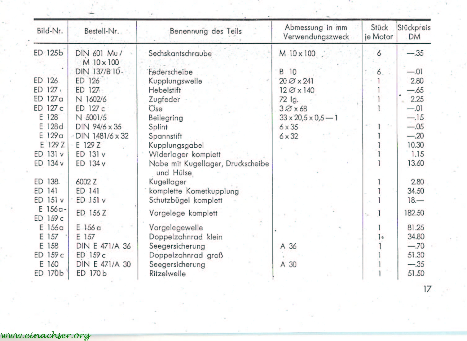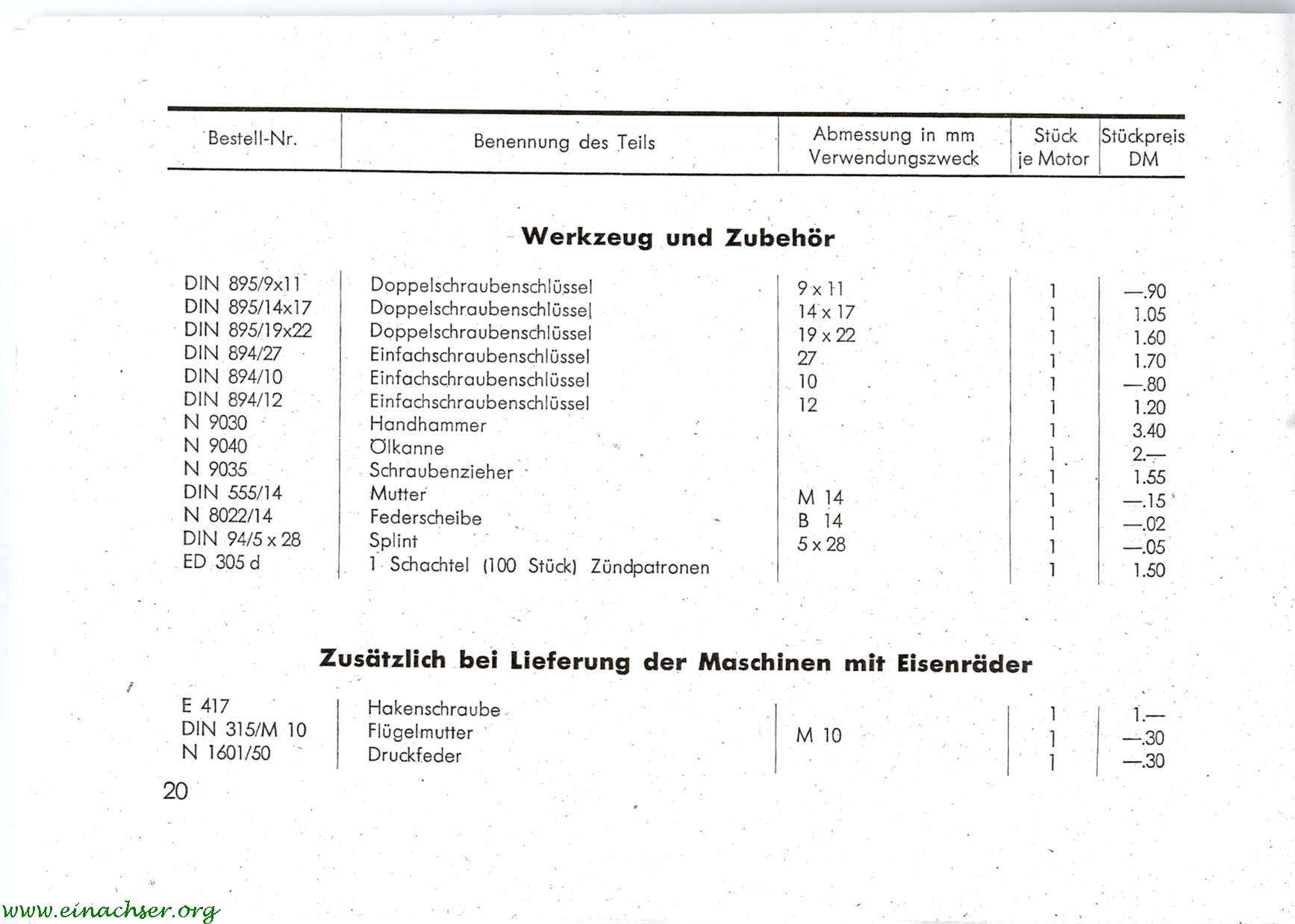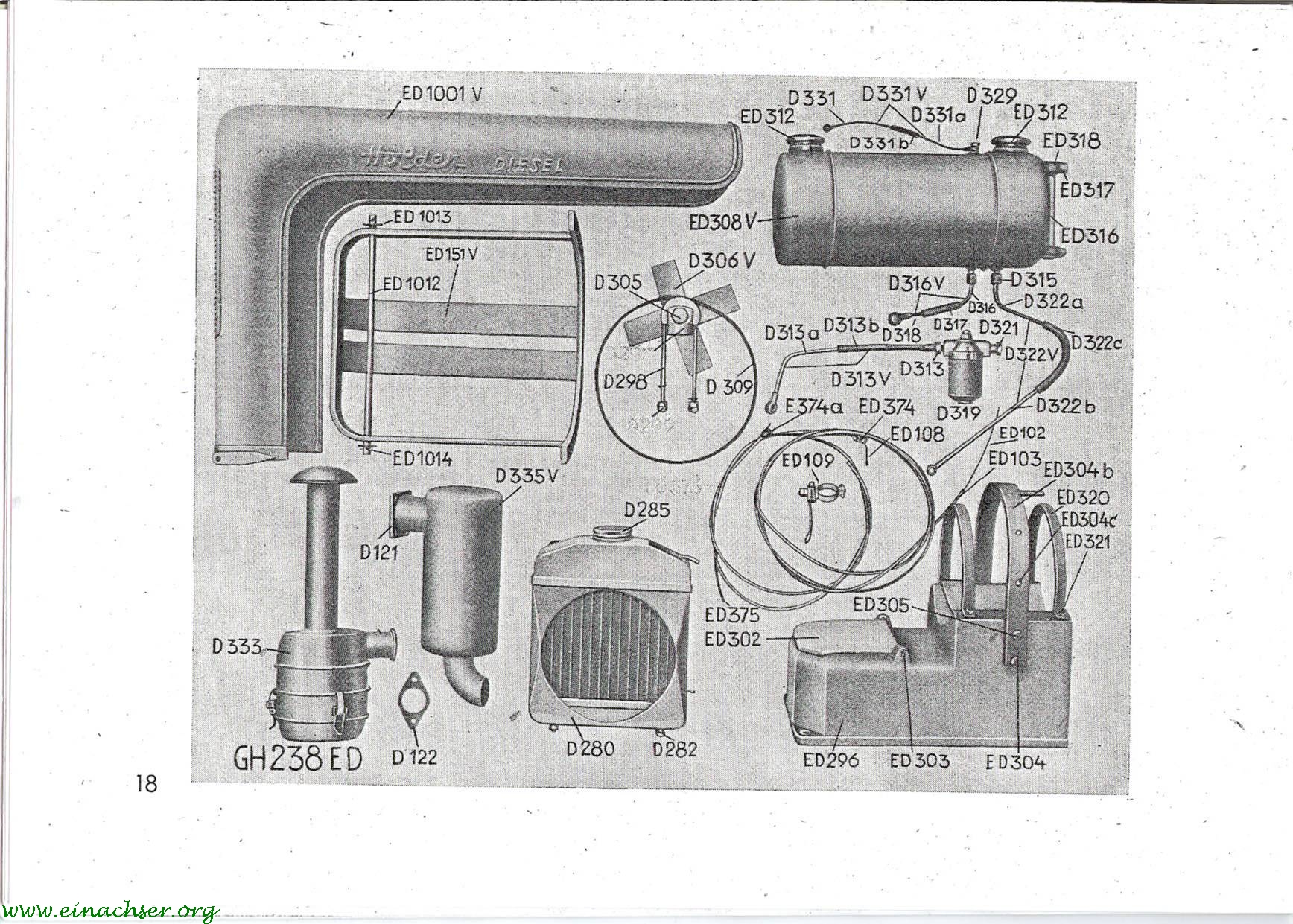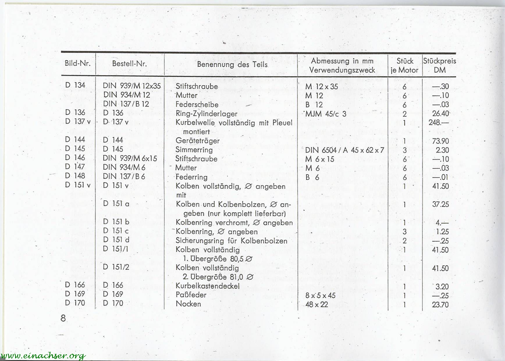 Beschreibung, Gebrauchsanweisung und Ersatzteilliste zum Holder Diesel-Motor D500
