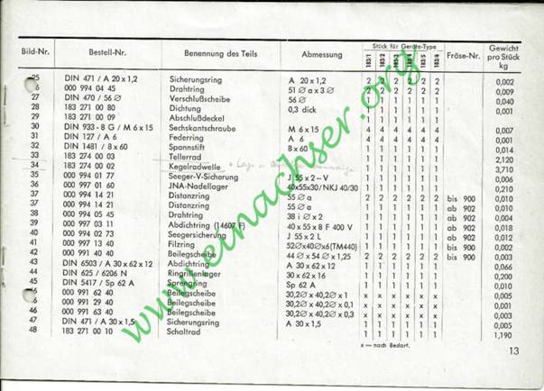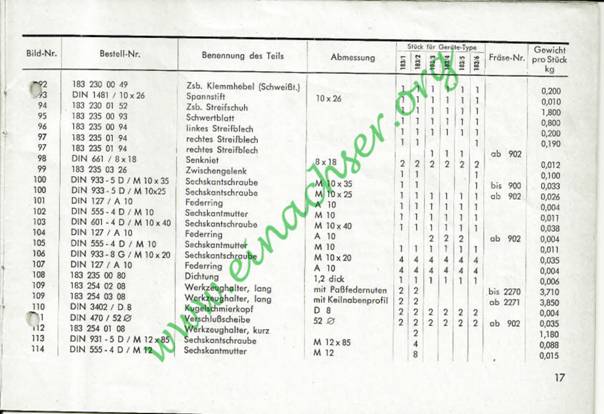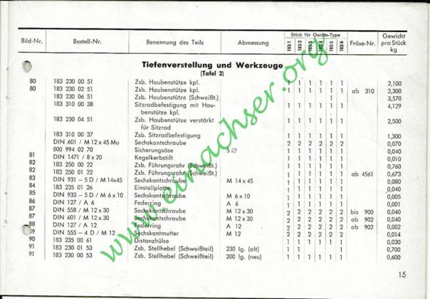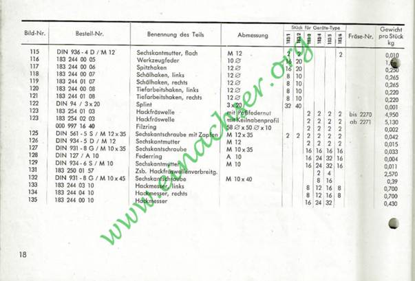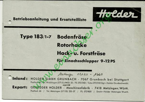 ET-Liste Holder Bodenfräse Type 183/1 – 183/7