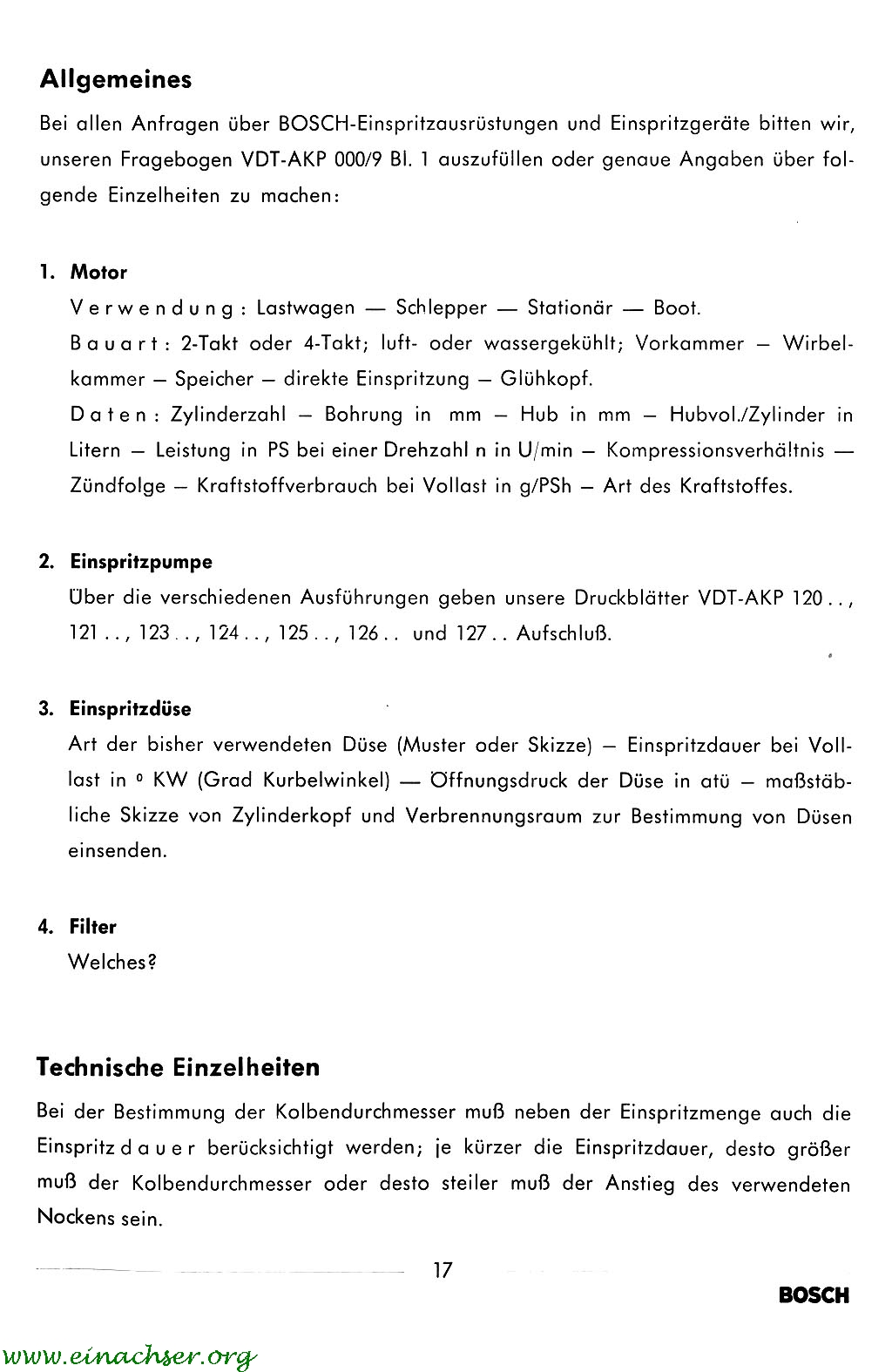 Bosch Einspritzausrüstung für Diesel-Motoren