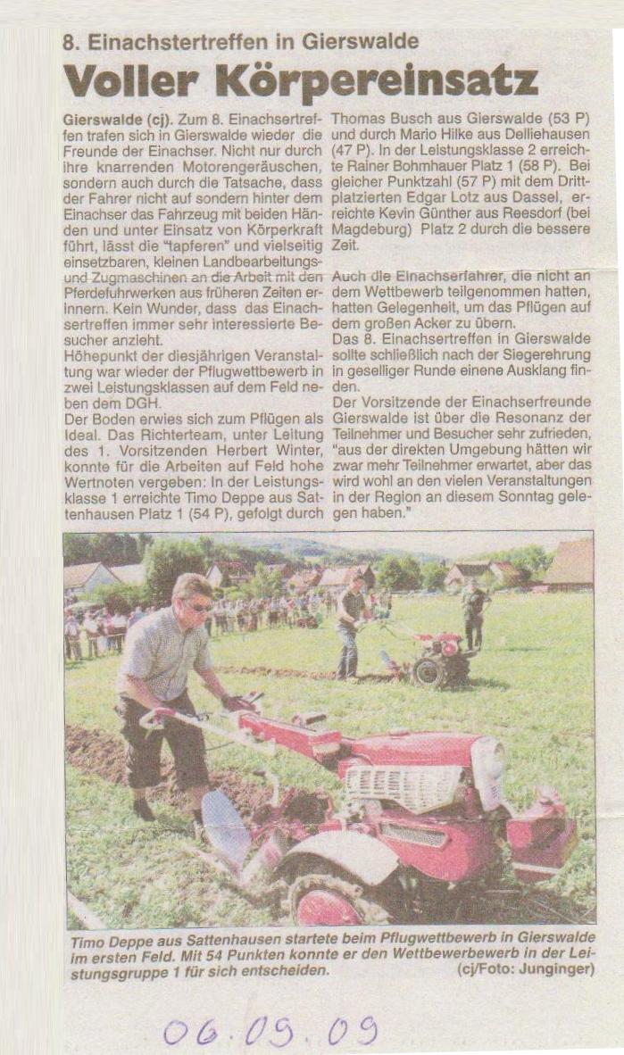 8. Einachser – Treffen am 22.08. - 23.08.2009 in Gierswalde